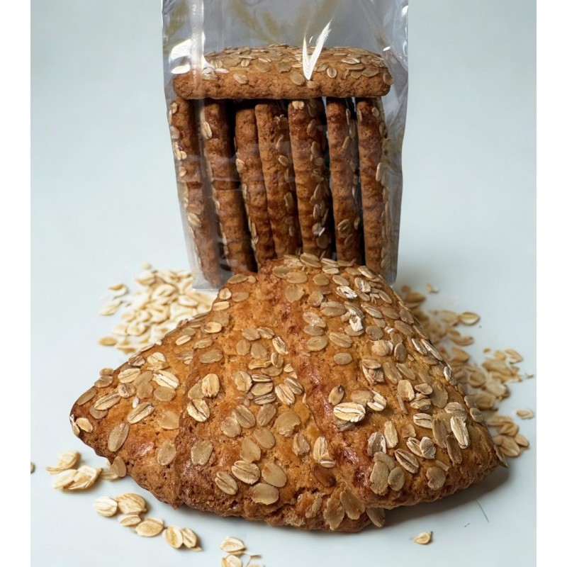 Ingredienti : Farina di frumento tipo 00, Farina di mais (19,5 %), Zucchero grezzo di canna, Burro, Uova di gallina, lievito in polvere,fiocchi d'avena in superficie.